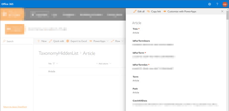 As SharePoint Term Store administrators, whether we want to create a taxonomy structure at tenant or site collection level for managed metadata fields or for navigation, any changes we make in the Term Store are reflected and stored in an internal SharePoint list you may know already, the Taxonomy Hidden List. This list, located at “[Site_Collection_URL]/Lists/TaxonomyHiddenList”, should be synced with the Term Store, otherwise, we won’t see consistent data in list views, web parts, and so on, unless we are editing an item through the edit form, which takes the values directly from the Term Store.